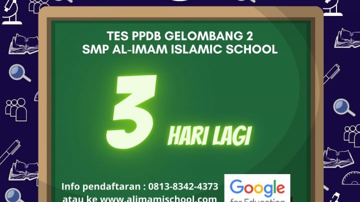 Bismilllah.. Assalamualaikum Warohmatullahi Wabarokatuh Apa kabar Ayah Bunda… Semoga senantiasa dalam perlindungan Allah Subhanahu Wata’ala… Allahumma aamiin Tak terasa kita sudah berada di penghujung bulan Maret 2021 dan sesuai Dengan jadwal kami memberitahukan bahwa Tes PPDB Gelombang 2 akan dilaksanakan secara Offline di sekolah. Dengan ini juga kami mengundang seluruh Ananda dan ayah/bunda untuk hadir…